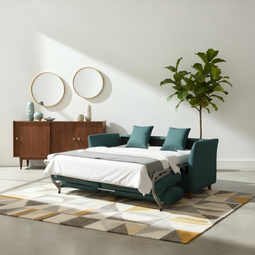 تأتي هذه الكنبه المميزة بثلاثه مقاعد مريحة ووسائد خلفية فاخرة، بالإضافة إلى مساند ذراع كبيرة توفر دعمًا إضافيًا وراحة قصوى. وإذا كنت بحاجة إلى مساحة إضافية للنوم، فلا تقلق! يمكنك بسهولة سحب الإطار العلوي وتحويله إلى سرير مريح في ثوانٍ معدودة.