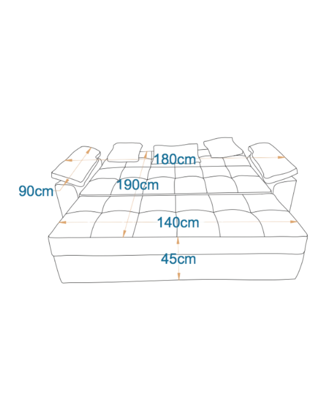 توفر لك ثلاث استخدامات (أريكة، شيز لون وسرير)، تعزز مساحة معيشتك وتمنحك شعوراً بالاسترخاء والراحة بعد عناء العمل وضغوط الحياة والشعور بالرفاهية التي تجمع بين العملية والأناقة ومثالية للاستخدام اليومي واستقبال الضيوف.
