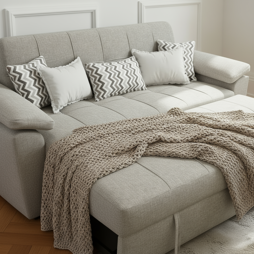 كنبه سرير الخيار الأمثل للمساحات الصغيرة أو الغرف التي تُستخدم لعدة أغراض وتتميز بتصميم عصري ومظهر أنيق.تأتي هذه الكنبة المميزة بمقعدين مريحين ووسائد خلفية فاخرة، بالإضافة إلى أذرع كبيرة توفر دعمًا إضافيًا وراحة قصوى. وإذا كنت بحاجة إلى مساحة إضافية للنوم، فلا داعي للقلق! يمكنك بسهولة سحب الإطار السفلي وتحويلها إلى سرير مريح يتسع لشخصين خلال ثوانٍ معدودة.