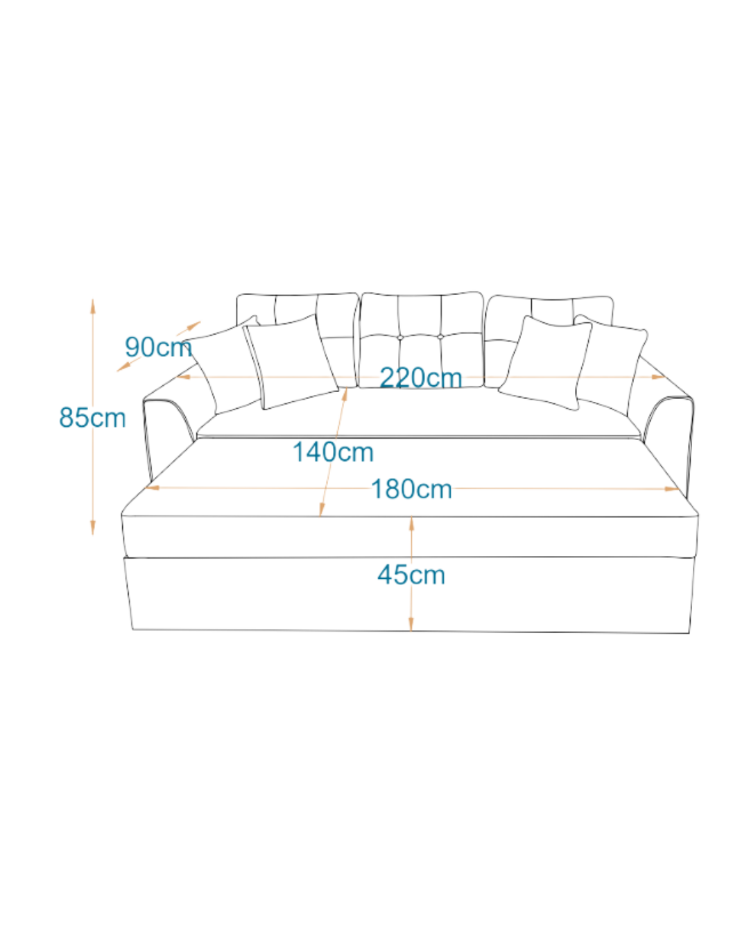 توفر لك ثلاث استخدامات (أريكة، شيز لون وسرير)، تعزز مساحة معيشتك وتمنحك شعوراً بالاسترخاء والراحة بعد عناء العمل وضغوط الحياة والشعور بالرفاهية التي تجمع بين العملية والأناقة ومثالية للاستخدام اليومي واستقبال الضيوف.