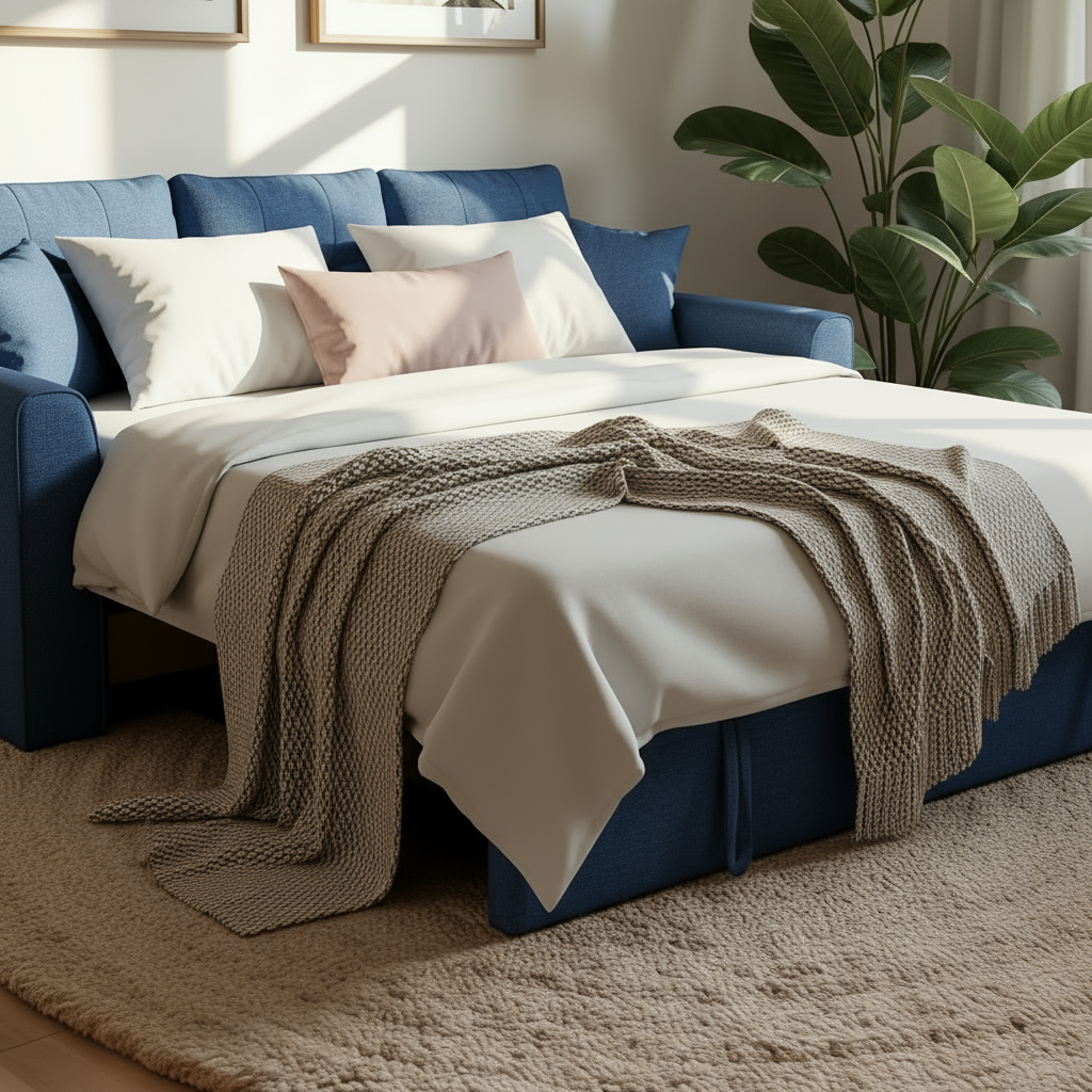 كنبه سرير الخيار الأمثل للمساحات الصغيرة أو الغرف التي تُستخدم لعدة أغراض وتتميز بتصميم عصري ومظهر أنيق.تأتي هذه الكنبة المميزة بمقعدين مريحين ووسائد خلفية فاخرة، بالإضافة إلى أذرع كبيرة توفر دعمًا إضافيًا وراحة قصوى. وإذا كنت بحاجة إلى مساحة إضافية للنوم، فلا داعي للقلق! يمكنك بسهولة سحب الإطار السفلي وتحويلها إلى سرير مريح يتسع لشخصين خلال ثوانٍ معدودة.