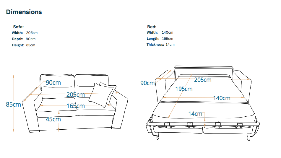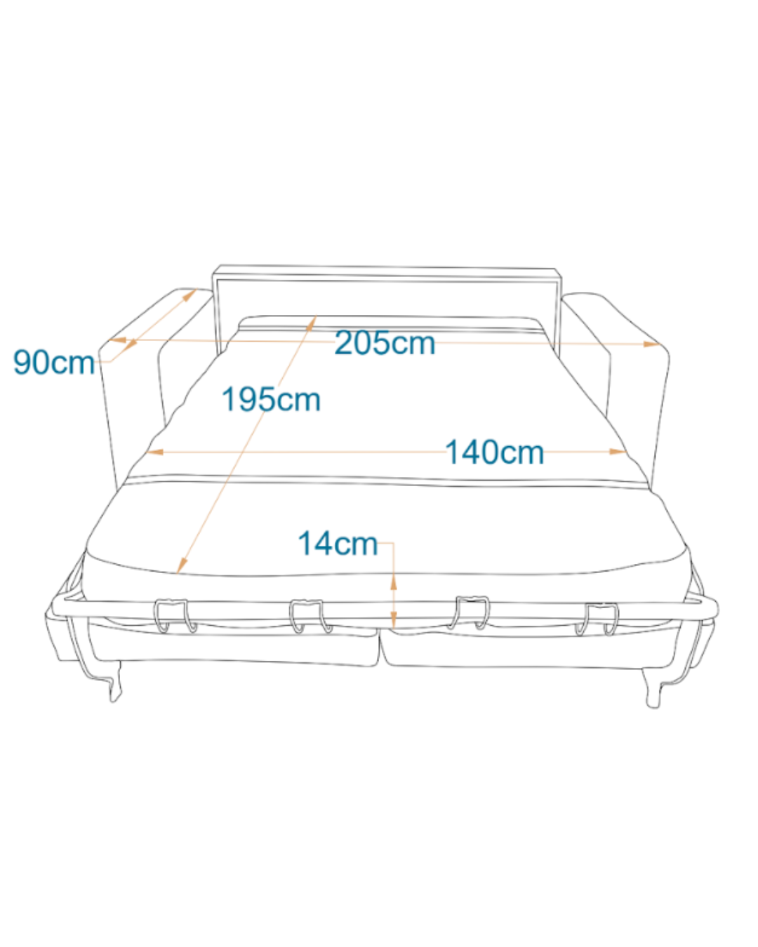 ديورا - كنبة سرير ثلاث مقاعد - أبعاد الأريكة: العرض 205 سم × العمق 90 سم × الارتفاع 85 سم أبعاد السرير: العرض 140 سم × الطول 195 سم / Beige