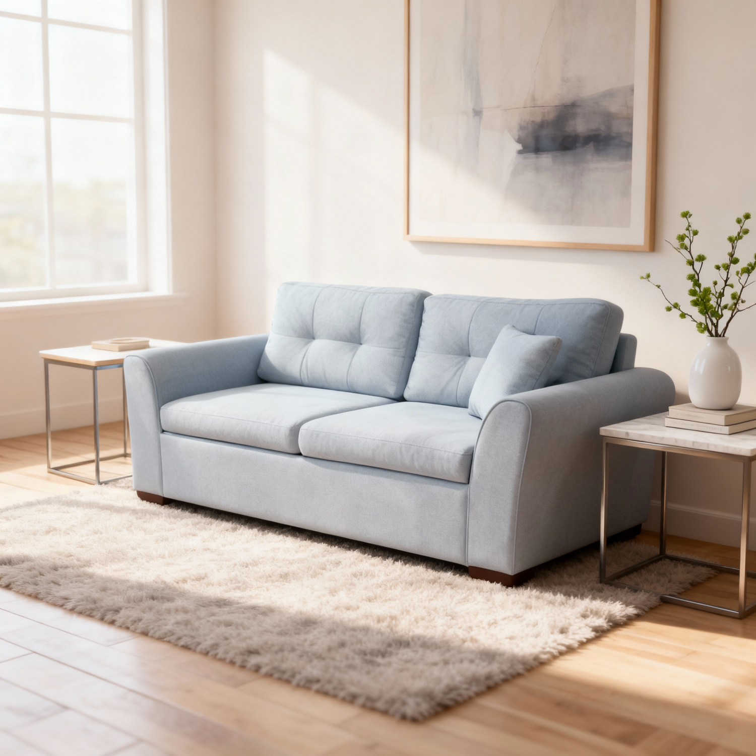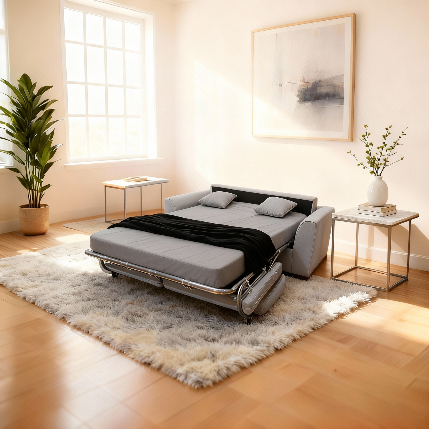 تأتي هذه الكنبه المميزة بثلاثه مقاعد مريحة ووسائد خلفية فاخرة، بالإضافة إلى مساند ذراع كبيرة توفر دعمًا إضافيًا وراحة قصوى. وإذا كنت بحاجة إلى مساحة إضافية للنوم، فلا تقلق! يمكنك بسهولة سحب الإطار العلوي وتحويله إلى سرير مريح في ثوانٍ معدودة.