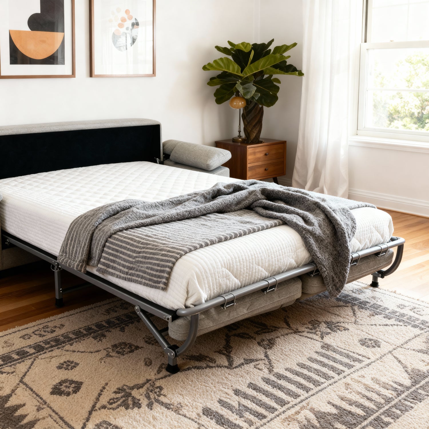 تأتي هذه الكنبه المميزة بثلاثه مقاعد مريحة ووسائد خلفية فاخرة، بالإضافة إلى مساند ذراع كبيرة توفر دعمًا إضافيًا وراحة قصوى. وإذا كنت بحاجة إلى مساحة إضافية للنوم، فلا تقلق! يمكنك بسهولة سحب الإطار العلوي وتحويله إلى سرير مريح في ثوانٍ معدودة.