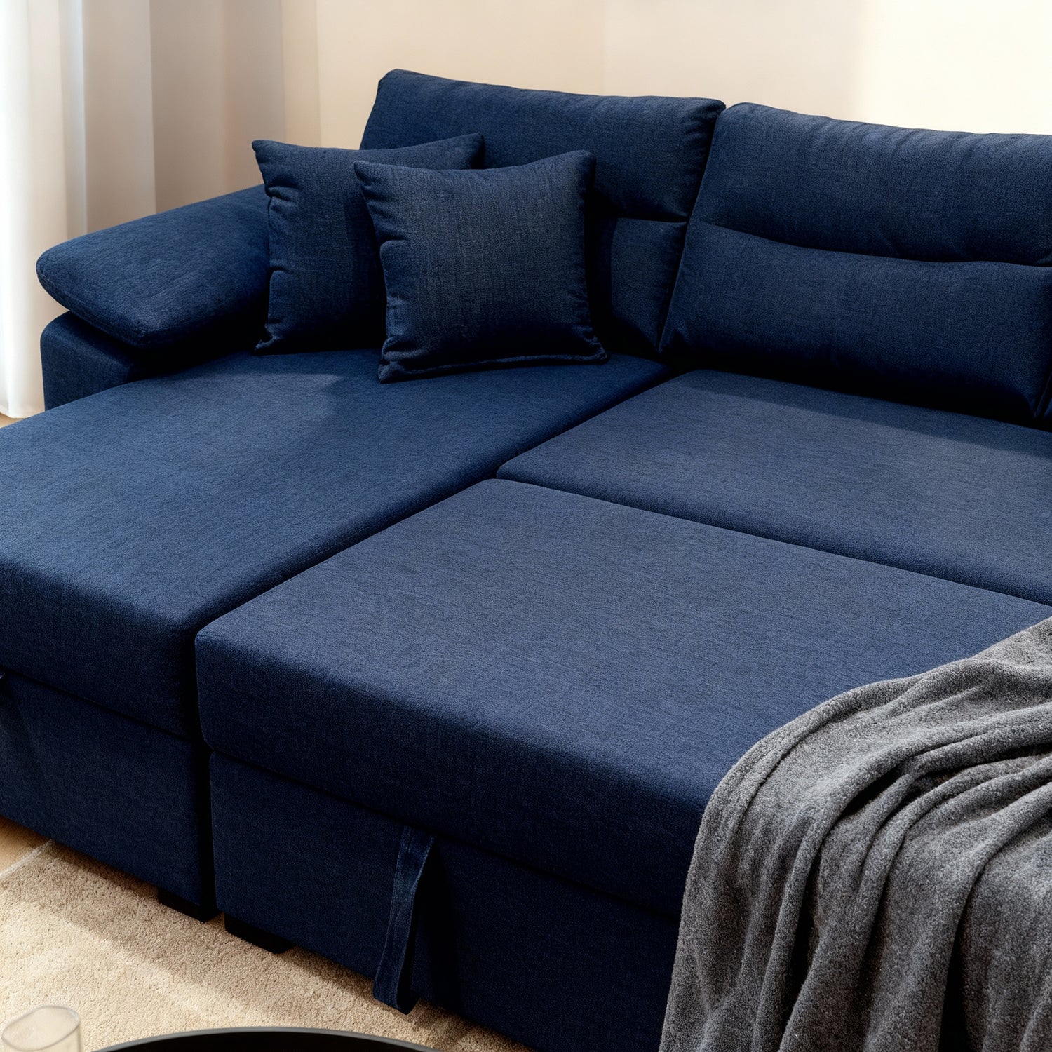 ركنه سرير شكل L الخيار الأمثل للمساحات الصغيرة أو الغرف التي تُستخدم لعدة أغراض وتتميز بتصميم عصري ومظهر أنيق.تأتي هذه الركنه المميزة مع مقاعد مريحه ووسائد خلفية فاخرة، بالإضافة إلى أذرع كبيرة توفر دعمًا إضافيًا وراحة قصوى. وإذا كنت بحاجة إلى مساحة إضافية للنوم، فلا داعي للقلق! يمكنك بسهولة سحب الإطار السفلي وتحويلها إلى سرير مريح وكبير خلال ثوانٍ معدودةبالاضافه انها مزوده بمساحه تخيزين كبيره.