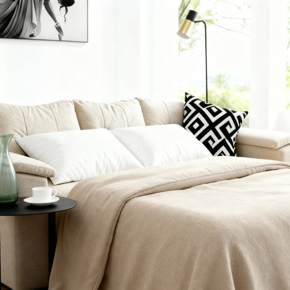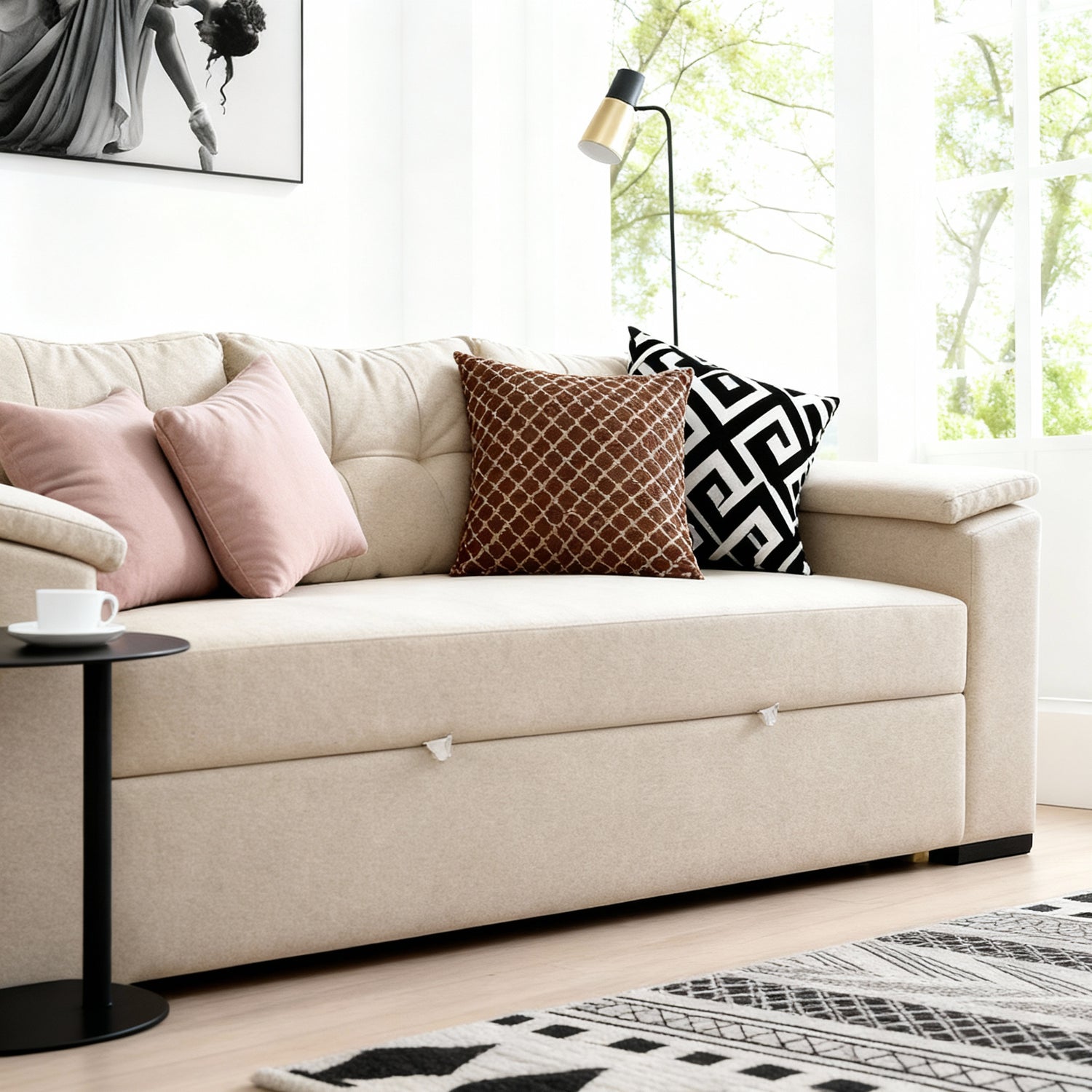 توفر لك ثلاث استخدامات (أريكة، شيز لون وسرير)، تعزز مساحة معيشتك وتمنحك شعوراً بالاسترخاء والراحة بعد عناء العمل وضغوط الحياة والشعور بالرفاهية التي تجمع بين العملية والأناقة ومثالية للاستخدام اليومي واستقبال الضيوف.