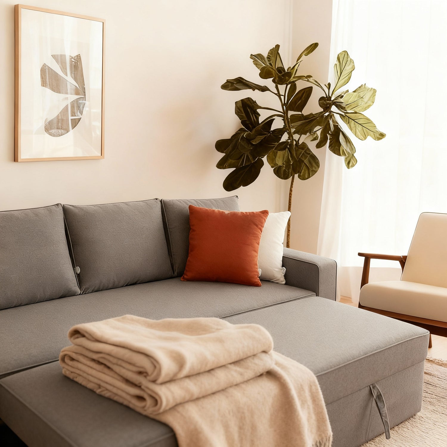 توفر لك ثلاث استخدامات (أريكة، شيز لون وسرير)، تعزز مساحة معيشتك وتمنحك شعوراً بالاسترخاء والراحة بعد عناء العمل وضغوط الحياة والشعور بالرفاهية التي تجمع بين العملية والأناقة ومثالية للاستخدام اليومي واستقبال الضيوف.