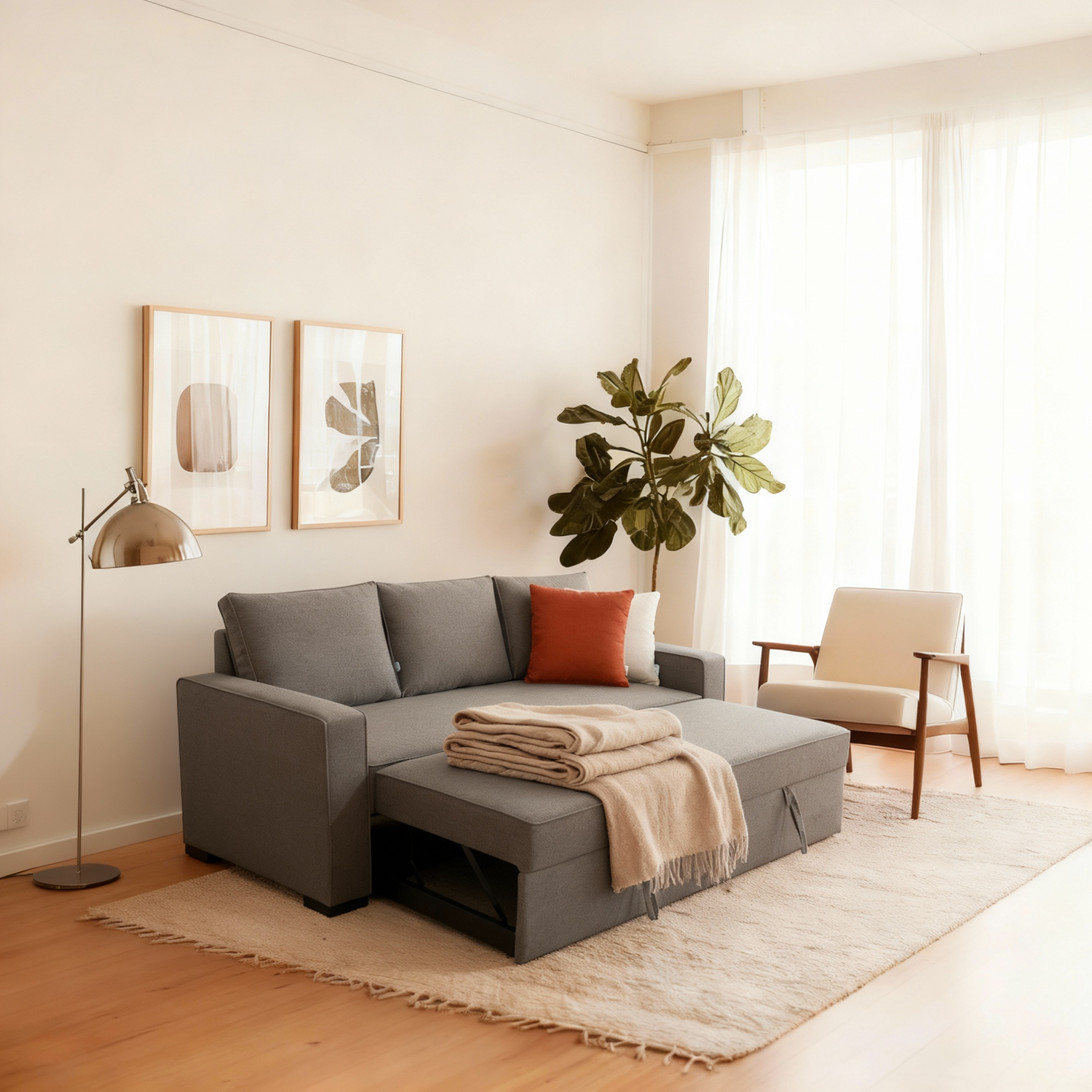 كنبه سرير الخيار الأمثل للمساحات الصغيرة أو الغرف التي تُستخدم لعدة أغراض وتتميز بتصميم عصري ومظهر أنيق.تأتي هذه الكنبة المميزة بمقعدين مريحين ووسائد خلفية فاخرة، بالإضافة إلى أذرع كبيرة توفر دعمًا إضافيًا وراحة قصوى. وإذا كنت بحاجة إلى مساحة إضافية للنوم، فلا داعي للقلق! يمكنك بسهولة سحب الإطار السفلي وتحويلها إلى سرير مريح يتسع لشخصين خلال ثوانٍ معدودة.