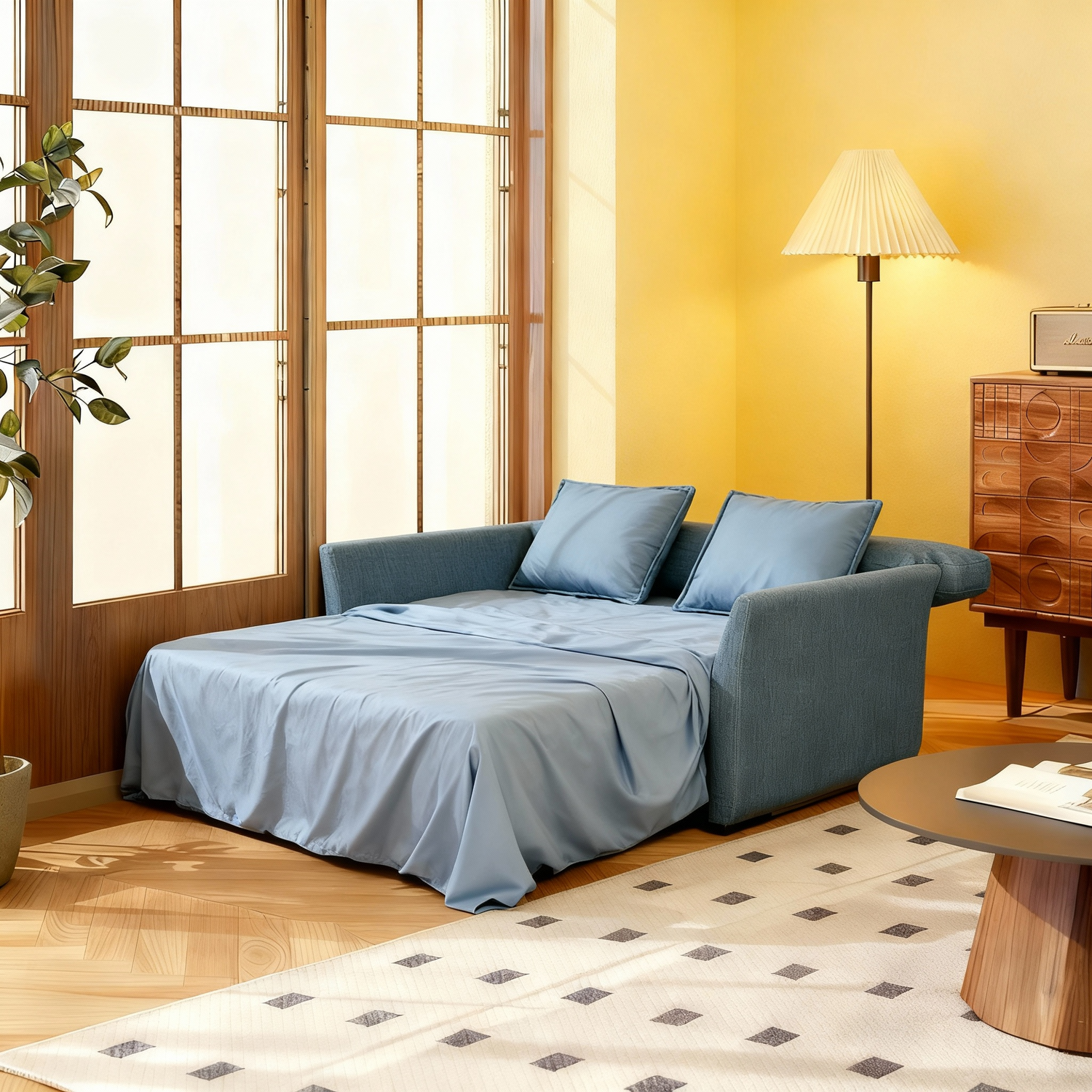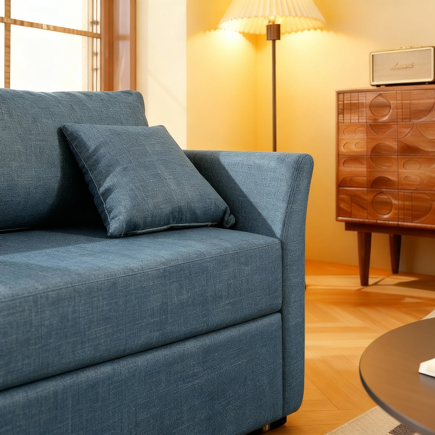 كنبه سرير الخيار الأمثل للمساحات الصغيرة أو الغرف التي تُستخدم لعدة أغراض وتتميز بتصميم عصري ومظهر أنيق.تأتي هذه الكنبة المميزة بمقعدين مريحين ووسائد خلفية فاخرة، بالإضافة إلى أذرع كبيرة توفر دعمًا إضافيًا وراحة قصوى. وإذا كنت بحاجة إلى مساحة إضافية للنوم، فلا داعي للقلق! يمكنك بسهولة سحب الإطار السفلي وتحويلها إلى سرير مريح يتسع لشخصين خلال ثوانٍ معدودة.