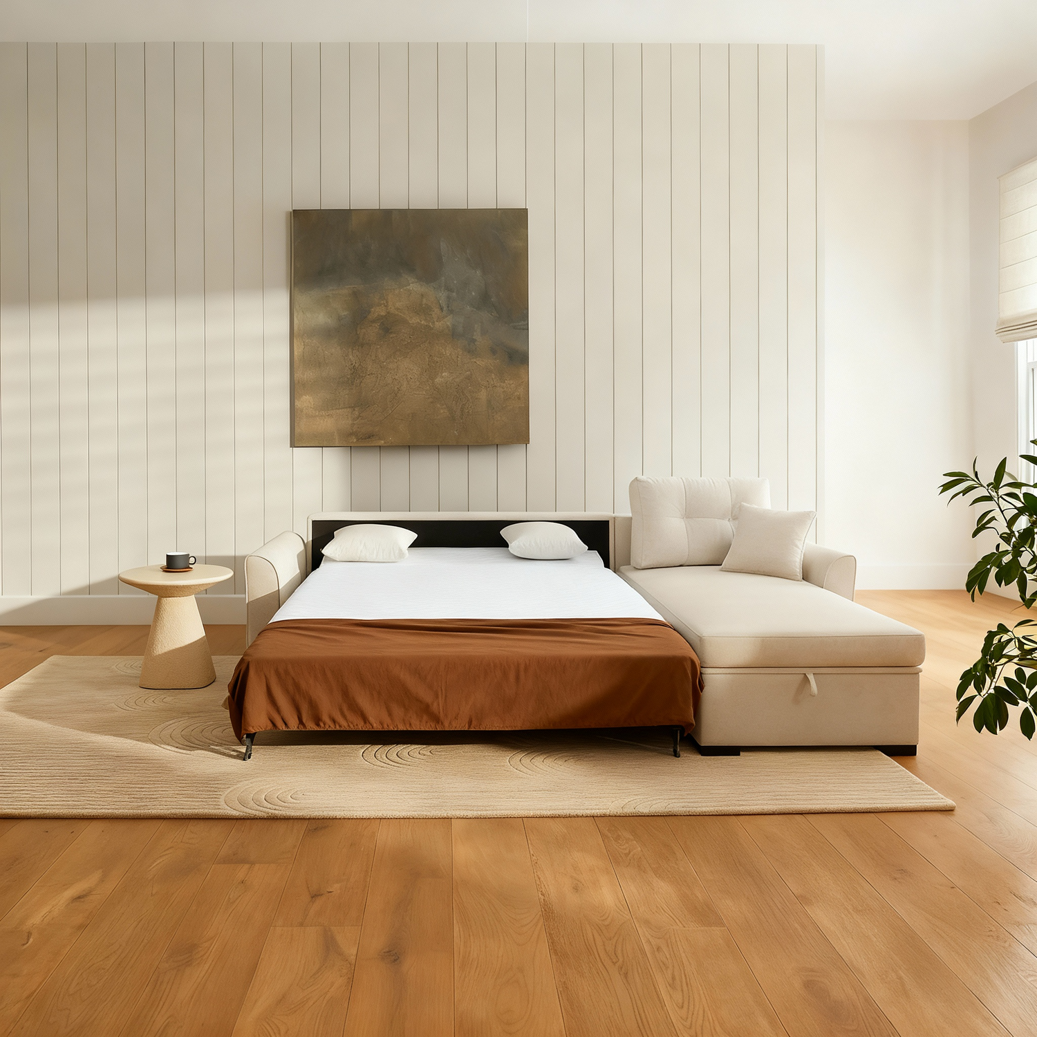 حوّل مساحة معيشتك الي غرفة نوم واسعة ومريحة، تجمع بين الراحة والرقي مع مرتبة إرتفاع 14 سم قابلة للطي بعرض140 سم، ومزيج متطور من الراحة والعملية والتصميم العصري. تتميز هذه الركنه بآليات Sedac -Meral المتطورة، ويوفر مساحة تخزين واسعة ومتانة وأناقة لا مثيل لها.