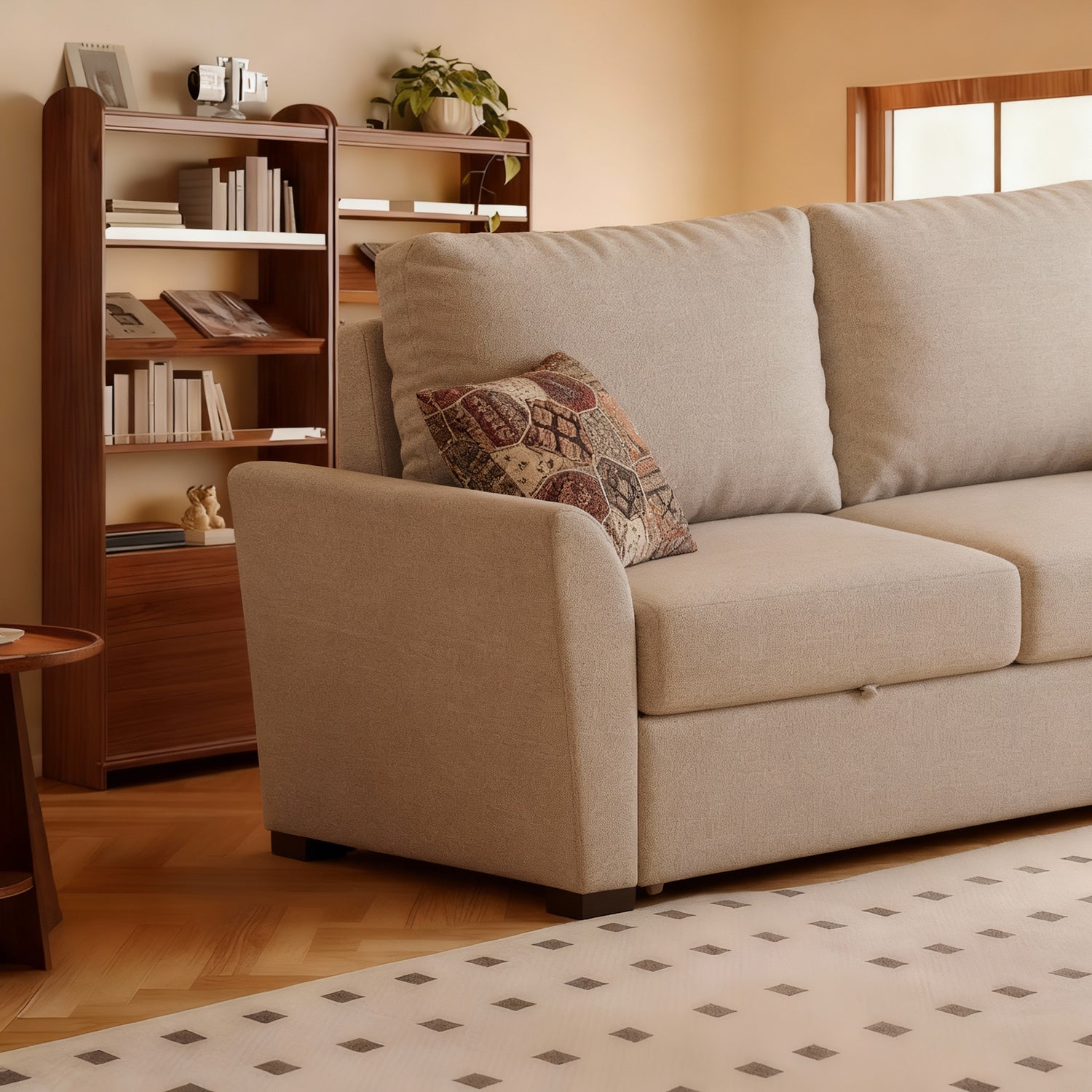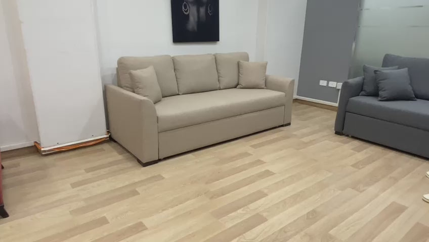 كنبه سرير الخيار الأمثل للمساحات الصغيرة أو الغرف التي تُستخدم لعدة أغراض وتتميز بتصميم عصري ومظهر أنيق.تأتي هذه الكنبة المميزة بمقعدين مريحين ووسائد خلفية فاخرة، بالإضافة إلى أذرع كبيرة توفر دعمًا إضافيًا وراحة قصوى. وإذا كنت بحاجة إلى مساحة إضافية للنوم، فلا داعي للقلق! يمكنك بسهولة سحب الإطار السفلي وتحويلها إلى سرير مريح يتسع لشخصين خلال ثوانٍ معدودة.