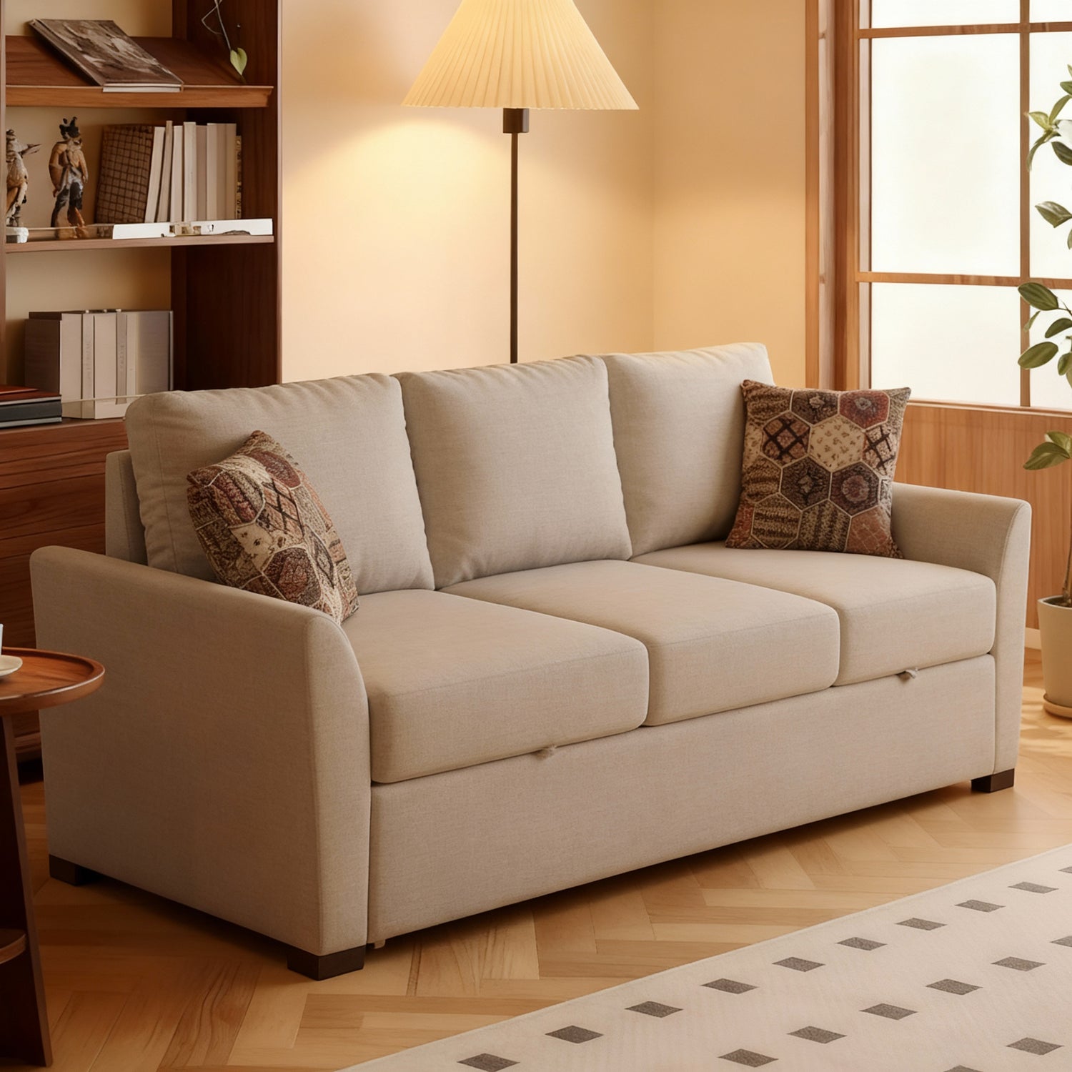 توفر لك ثلاث استخدامات (أريكة، شيز لون وسرير)، تعزز مساحة معيشتك وتمنحك شعوراً بالاسترخاء والراحة بعد عناء العمل وضغوط الحياة والشعور بالرفاهية التي تجمع بين العملية والأناقة ومثالية للاستخدام اليومي واستقبال الضيوف.