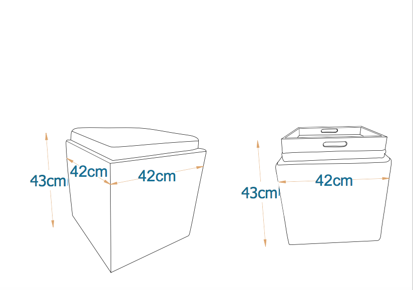 أبعاد البوف : (العرض 42 سم × الطول 42 سم × الارتفاع 43 سم)